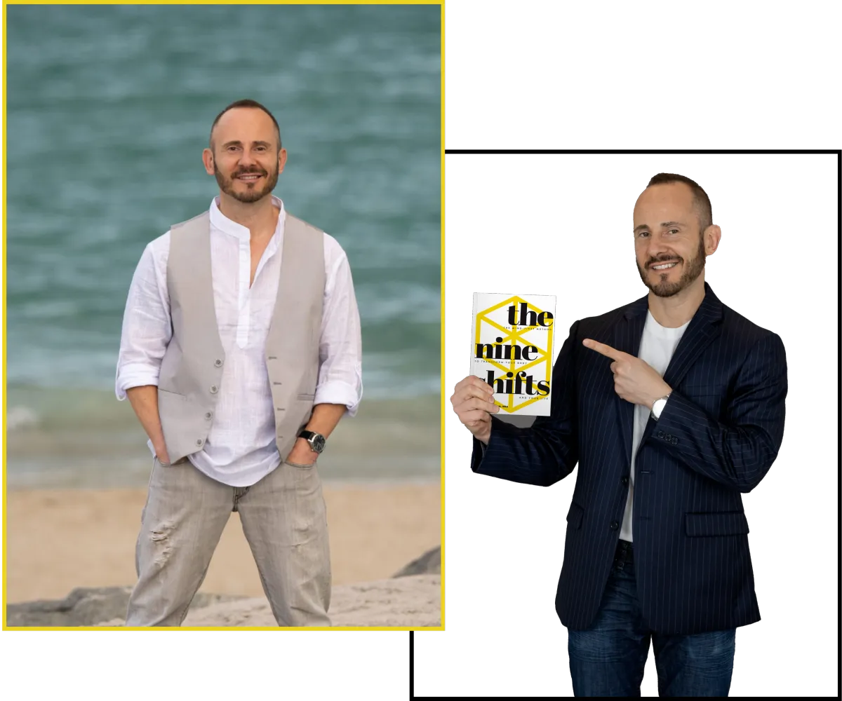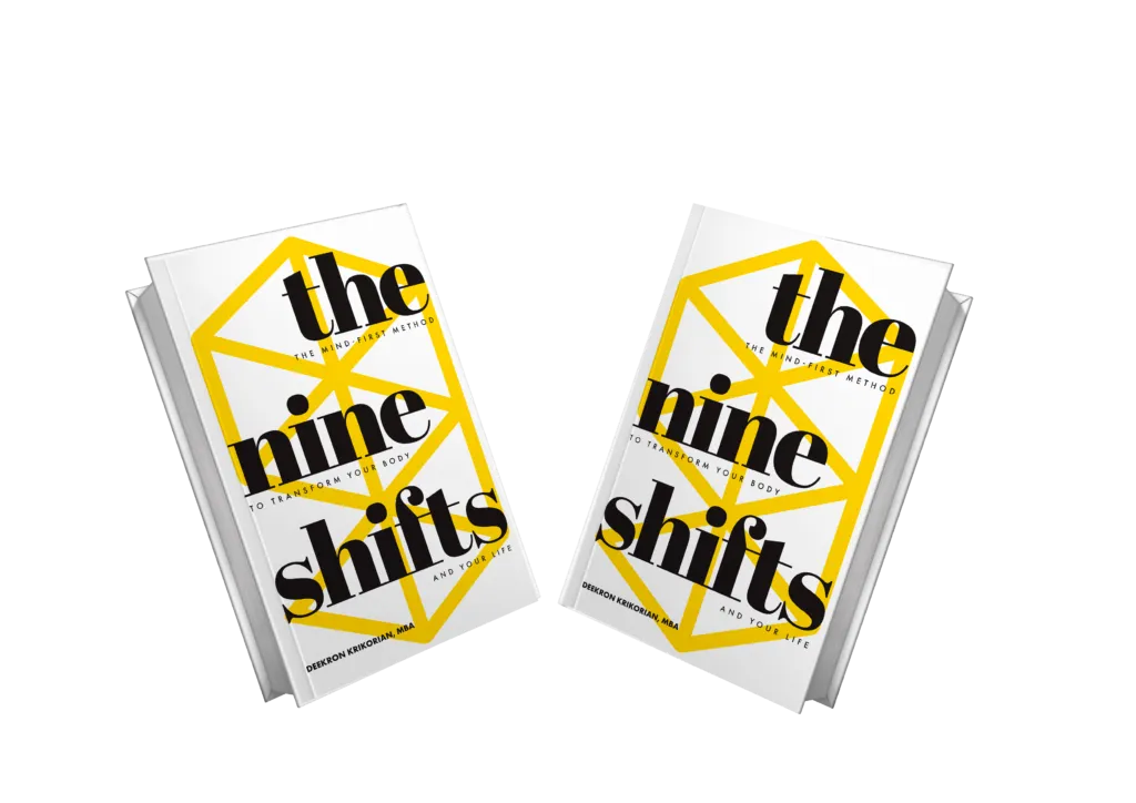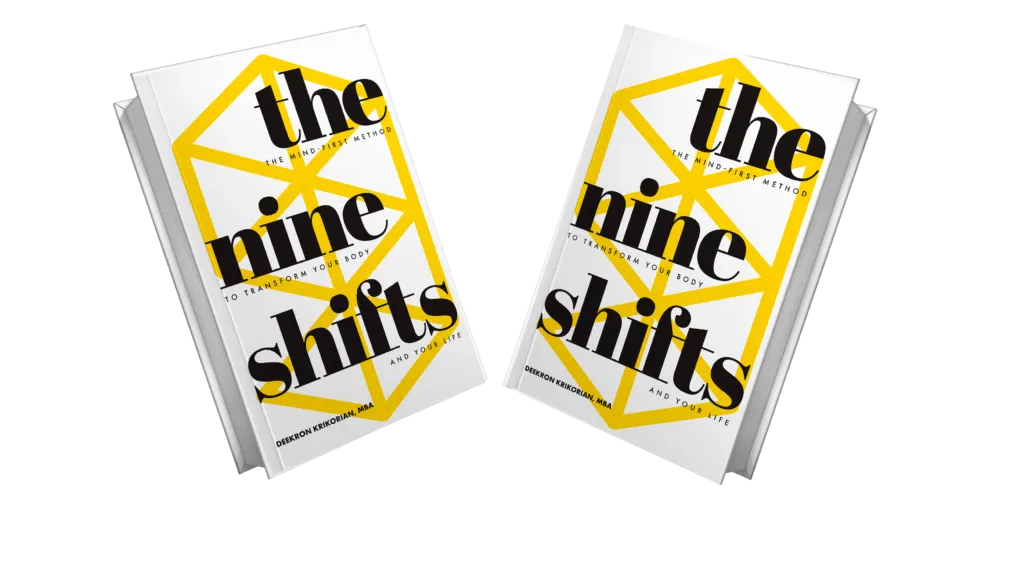 The Nine Shifts book shares a framework professionals over-40 can use to achieve a lasting body transformation by using a mind-first strategy. Traditional approaches to changing the body mainly focus on diet or exercise. Unfortunately, these approaches often fail to deliver long-term change because they do not account for the mental, physical, and external obstacles that can derail us from staying consistent with our habits.